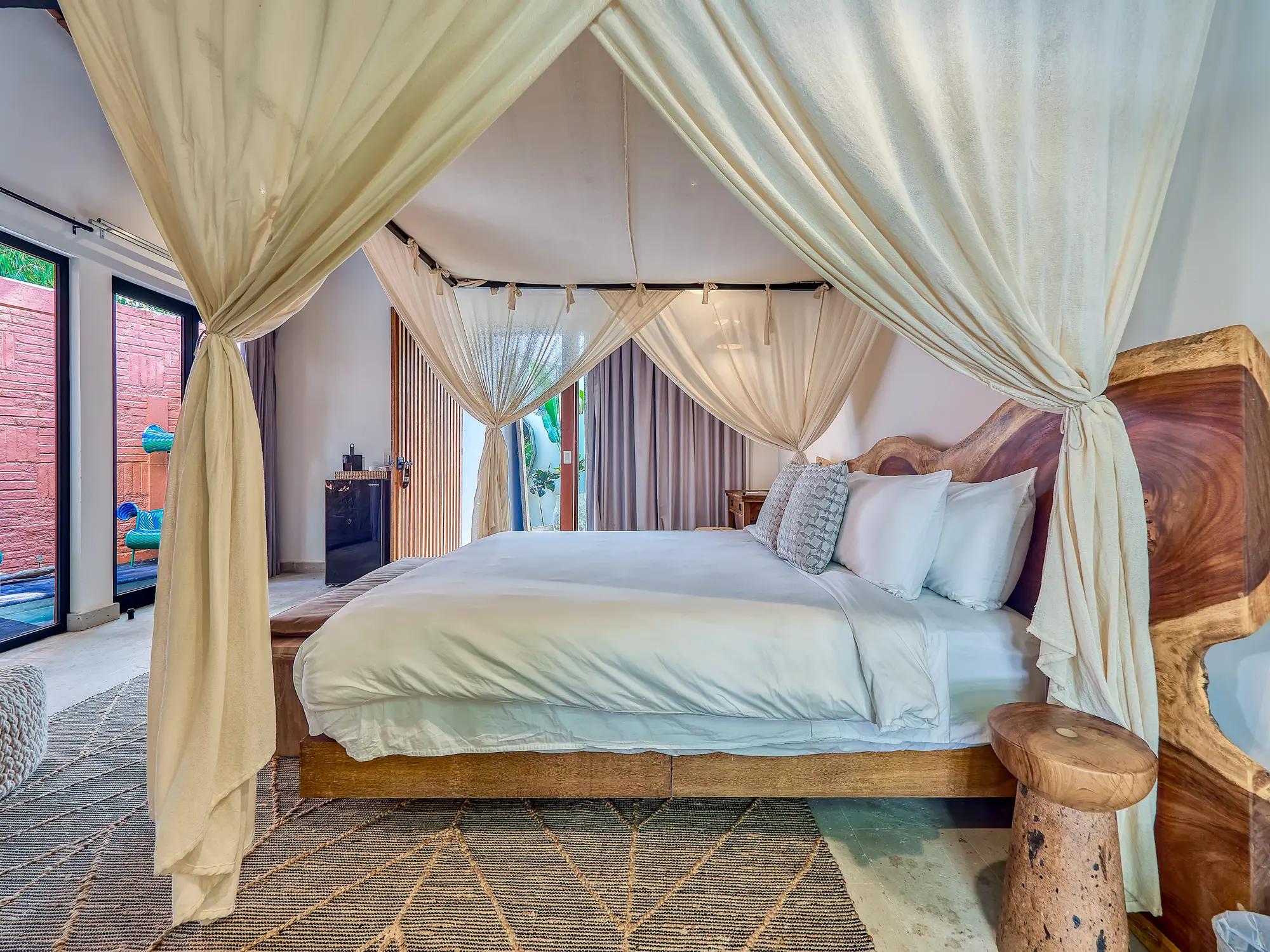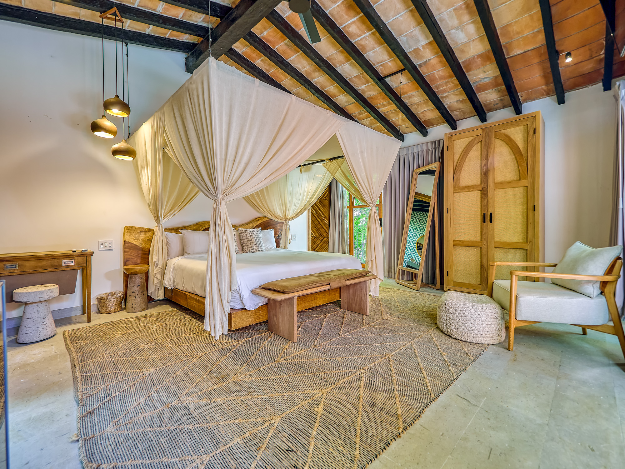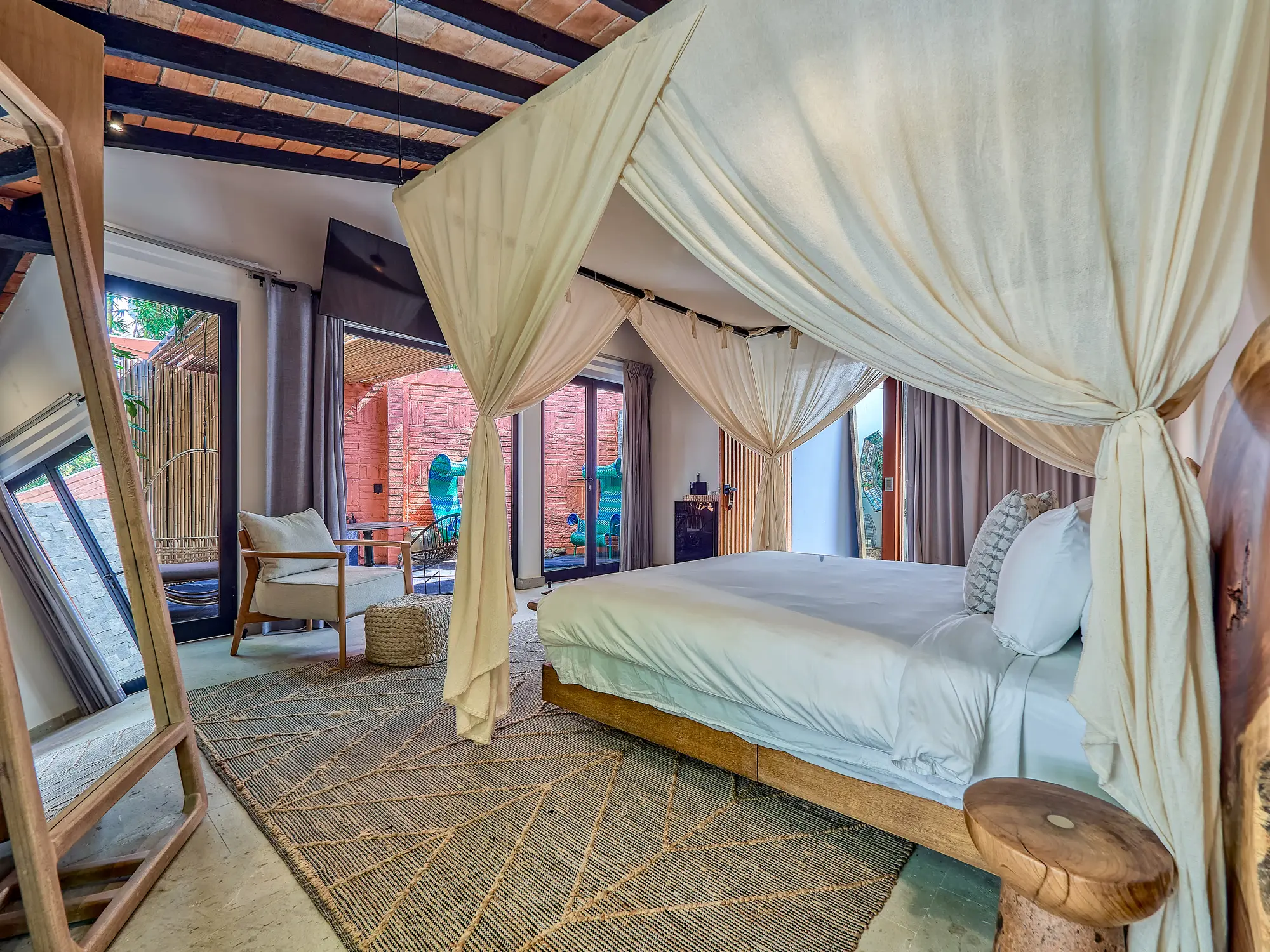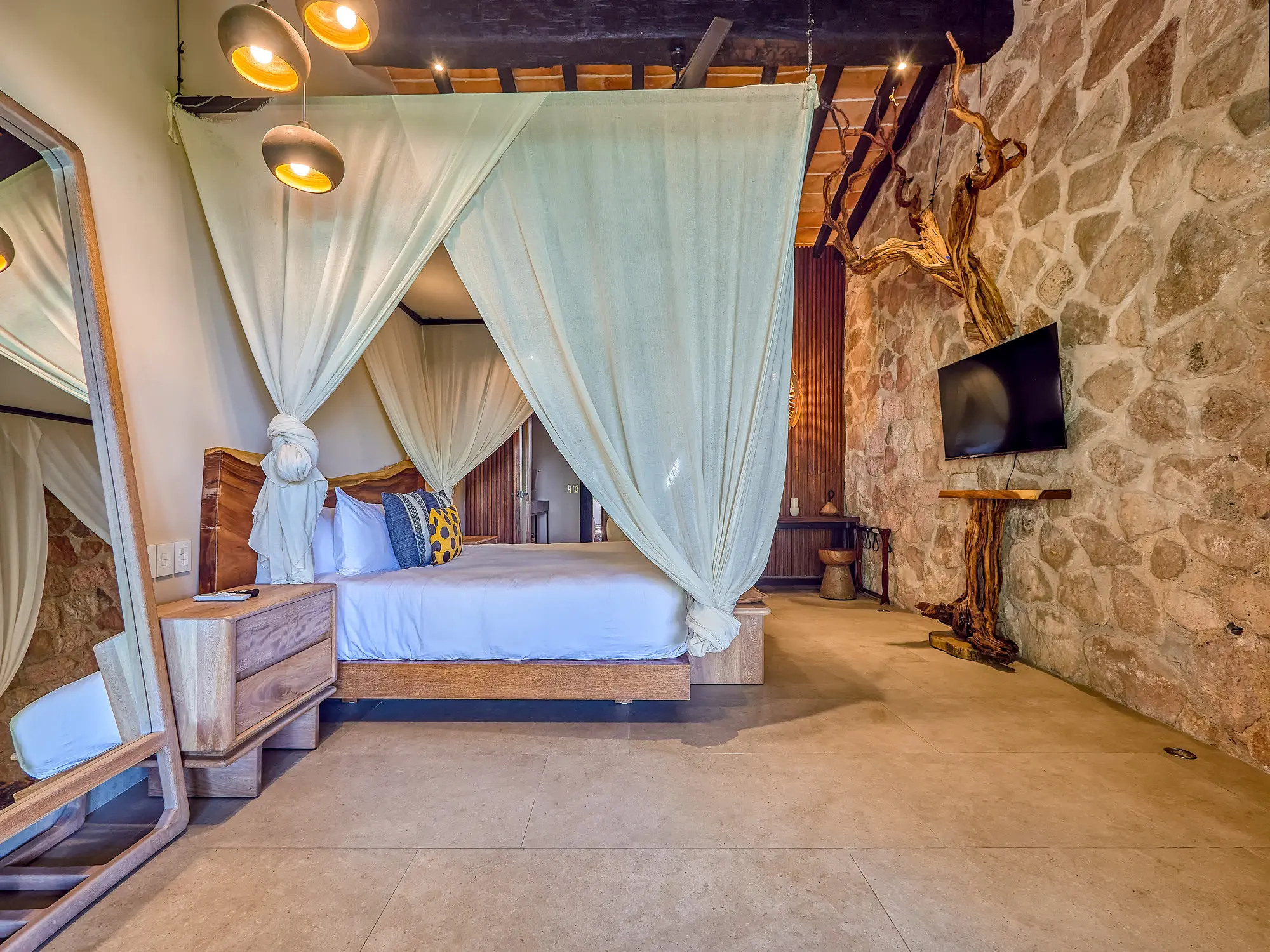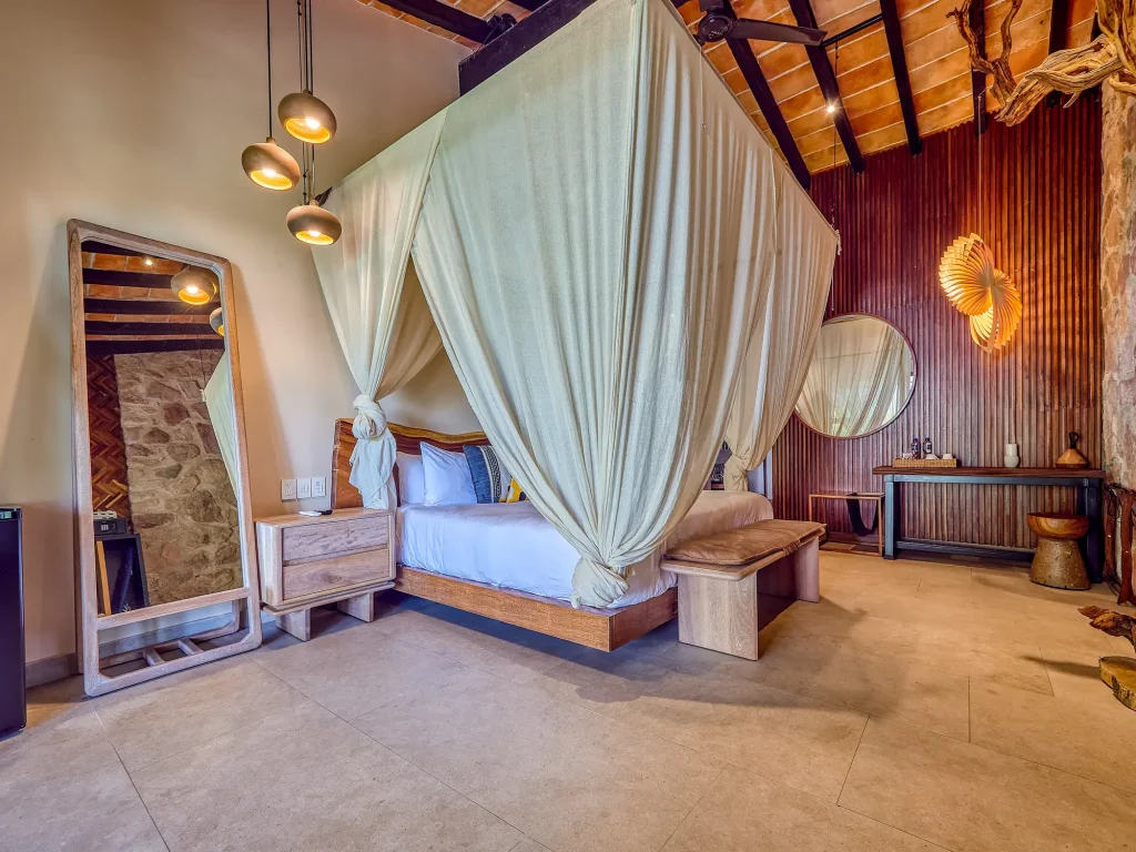 Perfect for couples seeking privacy and connection, this suite features a romantic canopy bed, soft lighting, and a private terrace designed for evening relaxation.