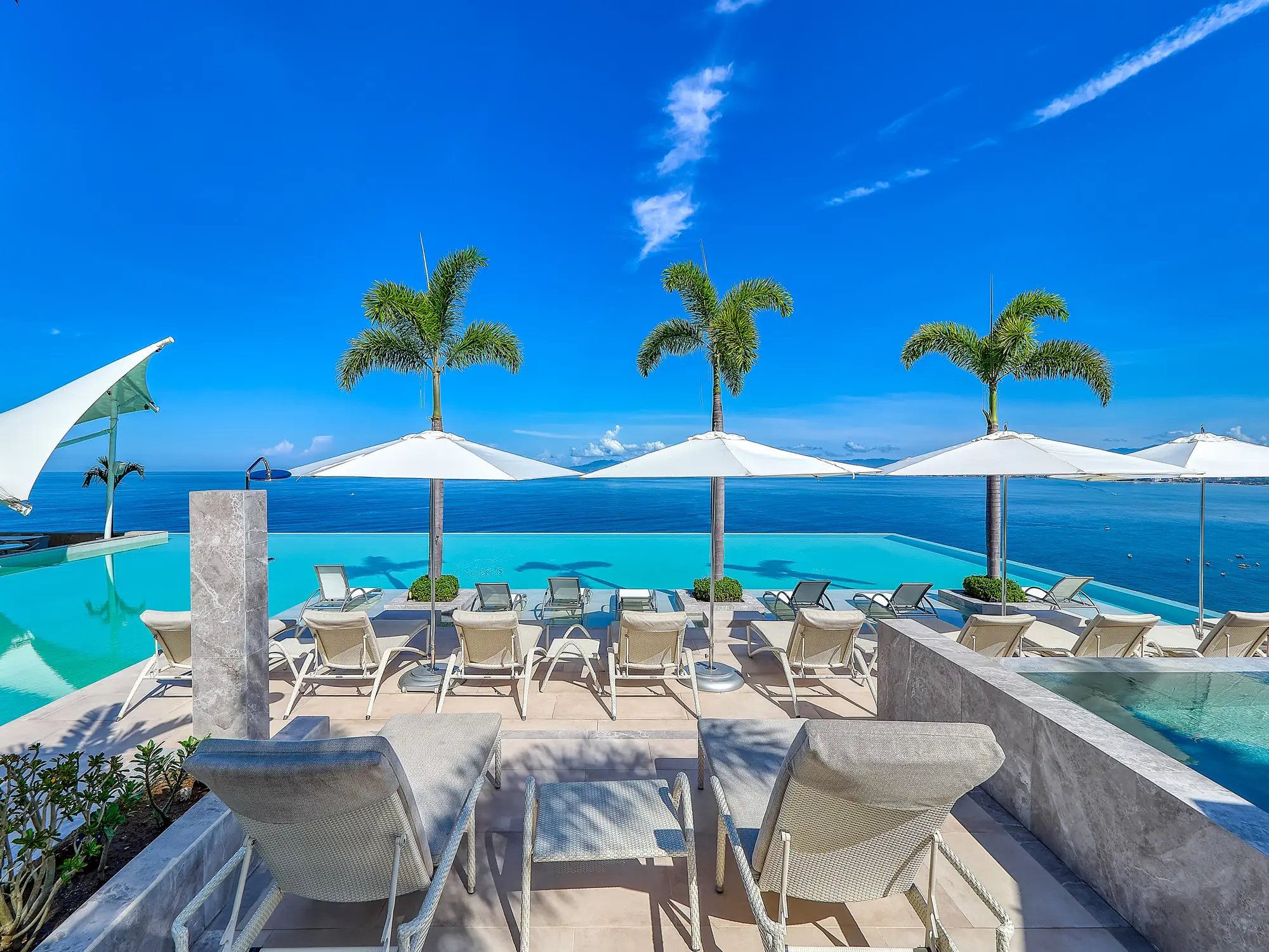 Infinity pool with ocean views, Olympic lap pool, and family-friendly children's pool with professional poolside service